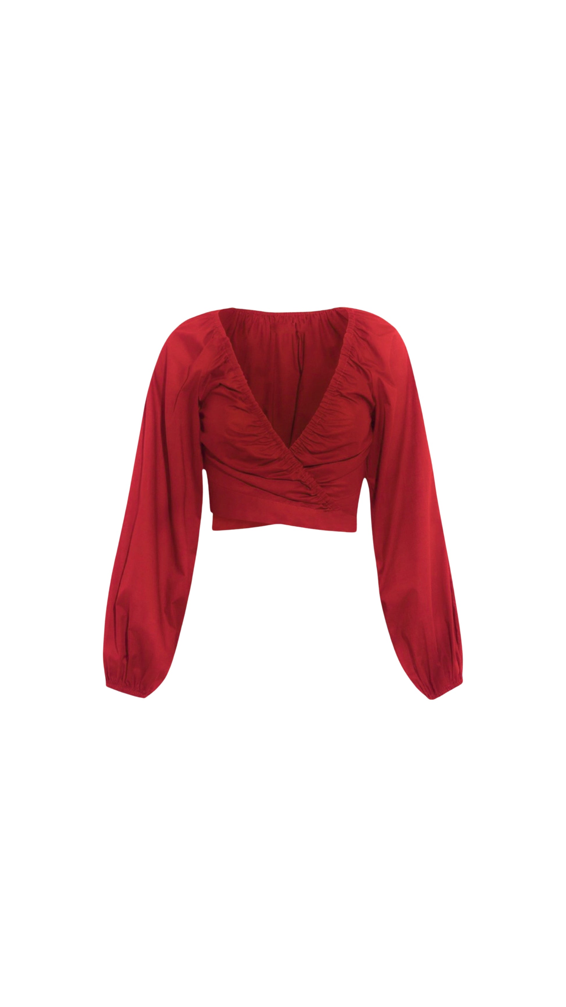 Women's Red Self Tie Wrap Crop Top